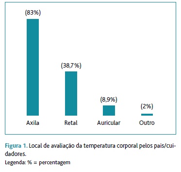 À semelhança do observado noutros estudos, também nesta amostra a maioria dos pais prefere avaliar a temperatura na axila, apesar de estar formalmente estabelecido que a medição retal é a forma recomendada nas crianças com idade inferior a 24 meses, dado ser o método que melhor corresponde à temperatura central.1,4