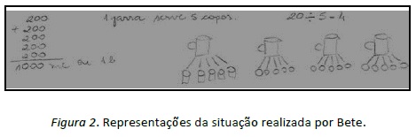 Na fase de matematização, na qual há dedução do modelo, os participantes, em especial as professoras, trouxeram para a discussão modos com os quais seus alunos poderiam lidar com os objetos matemáticos relacionados aos problemas (Figura 2).
