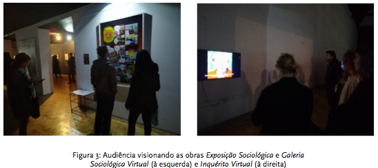 The epistemological, theoretical and methodological debates that aim at scientific credibility, cannot ignore the corresponding application to the social fabric. Conversely, action should always inform reflection. This article rationally demonstrates and sensorialy exhibits the following: one of the sociological genres, Artistic Sociology, transports sociology and its scientific language, from the academia to creative extension activities such as the exhibition of sociological knowledge within urban public space, for example in the case of the art gallery. In the same way, artistic knowledge and language should contaminate sociological discussion through an innovative sensibility. This is possible through the insertion, within a sociological text, not only of images from an art exhibition, presented as ‘Figures' (1,2 ... n). In addition, the art exhibition itself can be understood as a social and sociological configuration that is an organic part of the very body of the traditional sociological text. Thus, a profound hybridization of knowledge is sought, which can enrich, but also subvert, both sociological debates and art exhibitions. This purpose is accomplished here by several interconnected means: an epistemological approach between Artistic Sociology and Hybridogy; the theoretical problematization of mobile cultures; the empirical field work in the context of urban communication at City 3.0 and tourism communication in the context of Tourism 3.0; and the exhibition ‘New Art Fest'17, as the field for the application of innovative sociological and artistic methodological approaches. A first step was Sociological Exibition on Tourism 3.0 / Cidade 3.0, that demonstrated and showed the urban and travel knowledge, within the space of the art gallery. In a second phase, this knowledge tested through the exhibition audience, is reintroduced in a scientific journal article. Such a double research movement hybridizes and confronts, in both originary and original forms, scientific and artistic knowledge and practice.