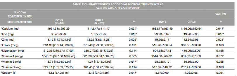 Table 2: Sample characterization according to micronutrients intake