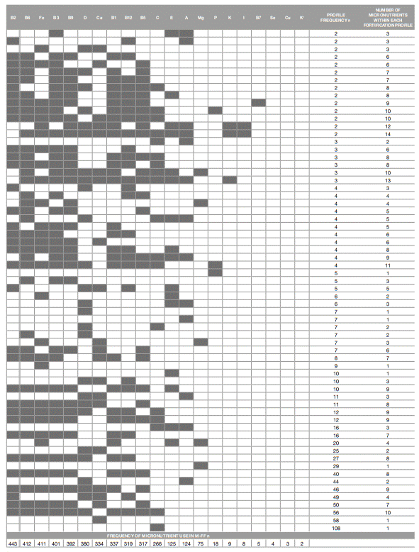 Figure 1 Frequency of foods fortified with each micronutrient and micronutrient fortification profile found in the analyzed sample of fortified foods (continuation)