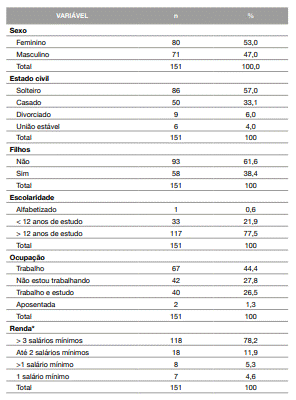 Tabela 1: Perfil sociodemográfico dos participantes - Volta Redonda, Brasil