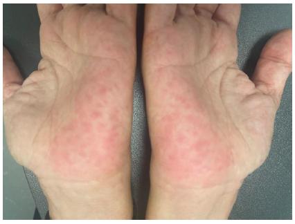 5 Sow Y, Wachuku C, Barrera T, Jackson T, Ayoade K, Taylor S, et al. Palmar and plantar erythema: An initial presentation of undifferentiated connective tissue disease. Journal of American Academy of Dermatology Case Reports. 2023; 35: 94-97. DOI:10.1016/j.jdcr.2023.03.007