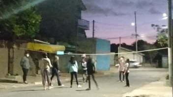 Figura 12 Adolescentes jogando voleibol na rua do Bairo Tatuquara (Curitiba), em março de 2021, sob bandeira vermelha (alto risco de contágio da COVID-19