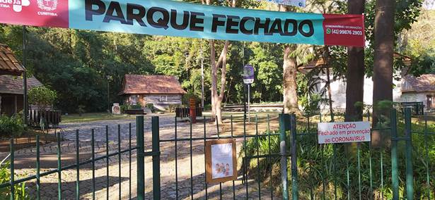 onde há portões, eles ficarão totalmente fechados. Nas unidades não gradeadas, os estacionamentos continuam restritos. É o caso dos parques Barigui, Tingui e Náutico, São Lourenço por exemplo. O acesso a esses locais e o estacionamento irregular serão monitorados e fiscalizados por agentes de trânsito e guardas municipais. ( ... ) Nos parques está permitida exclusivamente a prática de atividades individuais ao ar livre, com uso de máscaras, sem contato físico entre as pessoas e com distanciamento social. (Decreto Nº 520, 2021, p. 7)