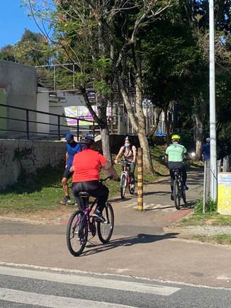 Figura 8 Ciclovia lotada no entorno do Parque São Lourenço (Curitiba), em junho de 2021, sob bandeira vermelha (alto risco de contágio da COVID-19)