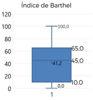 Figura 1 Relação do grau de dependência, através da aplicação da escala de Barthel (média = 41,2 pontos).