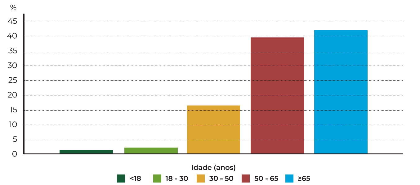 Foram incluídos 99 casos de doentes diagnosticados com NV e internados no Serviço de ORL para tratamento médico, durante o período de janeiro de 2019 a dezembro de 2023. Verificou-se que a maior parte dos doentes eram mulheres (n=57, 57,6%). (Tabela 1) A idade mediana ao diagnóstico foi de 62±14,3 anos (13-89 anos), sendo que 41 doentes (41,4%) apresentavam mais de 65 anos. (Gráfico 1) Os doentes com idade >65 anos relacionaram-se com a necessidade de um internamento prolongado (p=0,038). O trimestre de setembro, outubro e novembro foi o que registou maior ocorrência de episódios de NV (34,3%), sendo que novembro e dezembro foram os meses em que se registaram mais episódios (n=12, 12,1%). (Gráfico 2 e Tabela 2)