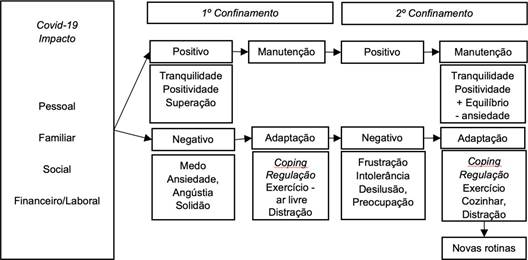 Figura 3: Modelo emergente das análises IPA/Lexical quanto ao impacto e adaptação aos confinamentos.