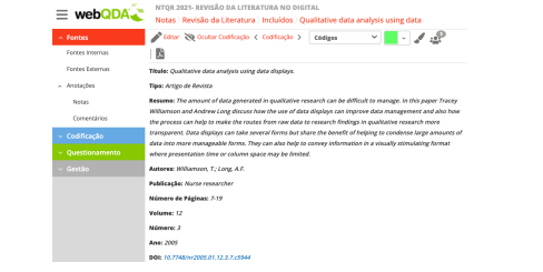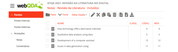 2.1.1 Exemplo de Revisão de Literatura com o webQDA