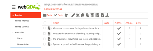 As 26 publicações selecionadas para a leitura na íntegra foram inseridas por meio do sistema de Fontes internas no formato PDF (Figura 5).