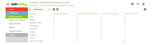 Esta seção apresentará o exemplo de uma RL apoiada pelo software de análise qualitativa webQDA (Costa et al., 2019). A escolha desse software se justifica pelo fato das autoras apresentarem experiência consolidada no conhecimento e na utilização das suas funcionalidades para o desenvolvimento desse tipo de pesquisa.