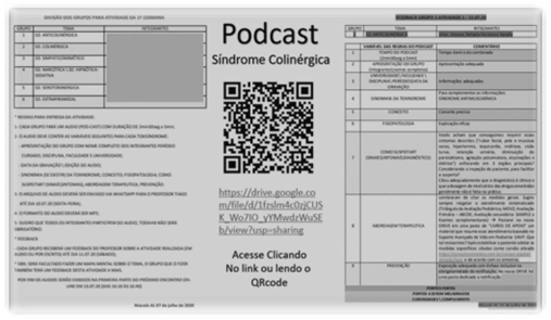 Esses pré-requisitos foram gradativamente cumpridos, a começar pela produção dos podcasts (figura 2) e, em seguida, dos cards (figura 3. Os estudantes e seus tutores criaram um QR Code para o podcast produzido, facilitando a divulgação.