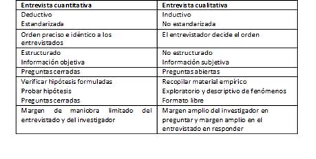 Tabla 1: Características de la entrevista cuantitativa y cualitativa