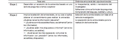 De tal forma que, la propuesta es comenzar con preguntas descriptivas; por ejemplo, ¿cómo sucedió?, ¿cómo lo sintió? Esto llevara al entrevistado a responder con facilidad. Al mismo tiempo, tienen la función importante de formar la base más profunda de la entrevista, para que, más adelante se puedan abordar los por qué. Hay que hacer énfasis en que los significados e interpretaciones están determinados en gran medida en la forma en cómo se hacen las preguntas. Otro punto relevante, es el lenguaje específico del entrevistado, ya que no es suficiente entender la mecánica de la entrevista; también es importante comprender el mundo del entrevistado, su lenguaje, su realidad, sus emociones, sus significados, su cultura, entre otros (Fontana & Frey, 1994). Esto debido a los usos y costumbres del grupo y su identidad. La selección de los entrevistados con base en el tema de investigación pudiera resultar fácil; sin embargo, no siempre será así y el investigador debe buscar el consentimiento explícito del entrevistado para recabar la información de su mundo, de sus emociones, de sus expectativas de vida (ver tabla 2).