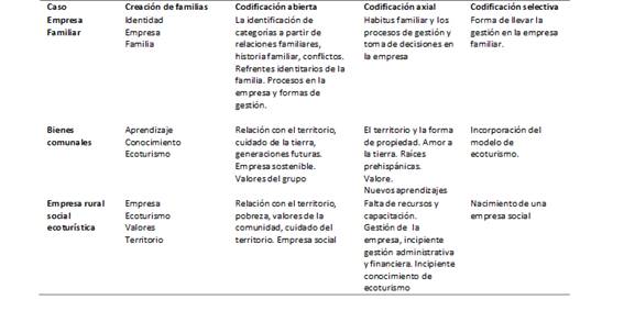 La aplicación de la teoría fundamentada de manera general en los tres estudios de caso se estableció de l siguiente manera (ver tabla 4):