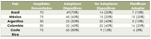 Los resultados muestran una tendencia hacia la adopción de dispositivos médicos conectados en Brasil, México, Argentina, Colombia y Costa Rica, con Costa Rica destacándose como líder en implementación.
