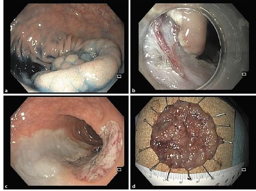 Endoscopic submucosal dissection (ESD) is a well-established endoscopic technique for the treatment of gastrointestinal lesions. An en bloc resection of these lesions is preferable, since it allows a precise histological evaluation and leads to lower rates of local recurrence [1, 2]; therefore, ESD has clear advantages over endoscopic mucosal resection (EMR) in larger lesions. This technique was initially developed for early gastric cancer, but its use has been generalized to other organs, particularly in high-volume centres.