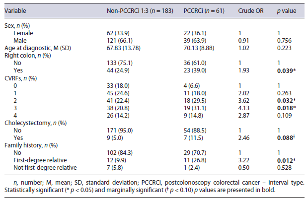 In our study, 491 patients recently diagnosed with CRC were included. Among them, 61 (12.4%) patients had PCCRCi.