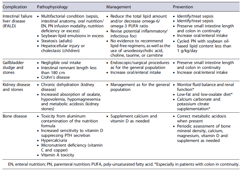 Table 2 Pathophysiologic and morphological classifications for intestinal failure and short bowel syndrome
