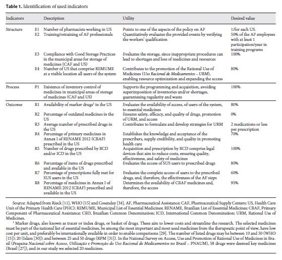 Indicators were identified, according to WHO criteria, in order to provide the following information: