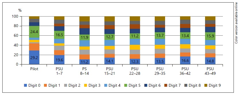 Fig.3. Last digit distribution for height measurement throughout the fieldwork. PSU, primary sampling unit.