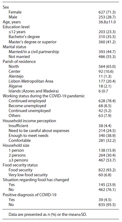 Considering this, and in light of Goal 2 of the Sustainable Development Goals (SDGs) - “End hunger, achieve food security and improved nutrition, and promote sustainable agriculture” 20 - it is of the utmost importance to explore the impact of the COVID-19 pandemic on the population’s food security status. Therefore, this study aimed to characterize the scenario of FI in a sample of Portuguese residents during the COVID-19 pandemic and to explore its related sociodemographic characteristics.