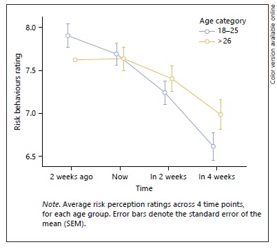 Little is known about whether the dynamics of risk perception (and risk attitude), as described in the model of Poletti et al. 17, differ across different age groups. Previous research has shown that younger adults take more risks, especially health-associated risks (e.g., using drugs or alcohol or having unprotected sex) 18-24 when compared to other adults 21,25. This tendency for risk-taking might also influence future predictions of risk among young adults during the pandemic.
