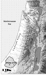 This area can be divided into three main geomorphological regions (Singer, 2007). The eastern one is represented by low smooth hills, composed of conglomerates and outcrops of carbonate Paleogene rocks (mainly chalks) with stony shallow Lithosols (see Figure 2). The central region is occupied by the ancient (Neogene-Pleistocene) alluvial plain. Its south area is covered by sandy loess Pleistocene sediments with Sandy soils, while the central and north areas consist of Pleistocene loess sediments with Light brown soils and sometimes Serozems. The west coastal region is formed by Pleistocene seaside dunes, composed of carbonate sandstone with a complex of specific soils among which Pararendzinas and Reddish-brown calcareous soils (local name - Husmas) dominate.