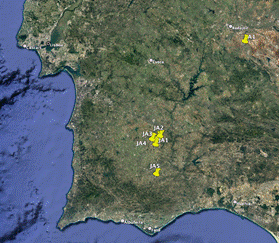 En Alentejo y Extremadura, se localizan pequeñas extensiones muy afectadas por actividades antrópicas: pastoreo, transformación en terrenos agrícolas o repoblaciones forestales. Se ha estudiado el estado de este hábitat, así como los impactos a que está sometido. En este trabajo presentamos los primeros resultados en cuanto a características edáficas, hídricas, clima y vegetación.