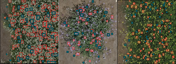La puesta a punto de un sistema para el monitoreo de márgenes florales, que sea eficiente en términos de tiempo y coste, se beneficiaría del empleo de herramientas como la teledetección combinada con métodos operativos basados en inteligencia artificial, capaces de detectar y cuantificar los recursos florales (Gallmann et al., 2022). La detección remota de flores en márgenes con alta diversidad floral supone un gran desafío, debido al pequeño tamaño de sus estructuras, la superposición de flores, la posibilidad de que estén parcialmente ocultas o incluso en movimiento debido al viento durante la captura de imágenes (Gallmann et al., 2022). En la revisión de Gonzales et al. (2022) se presentan las limitaciones y capacidades de la teledetección para llevar a cabo esta tarea y ya existen trabajos que emplean imágenes tomadas con dron en los cuales se detectan flores de distintas especies (Chen et al., 2019; Gallmann et al., 2022).