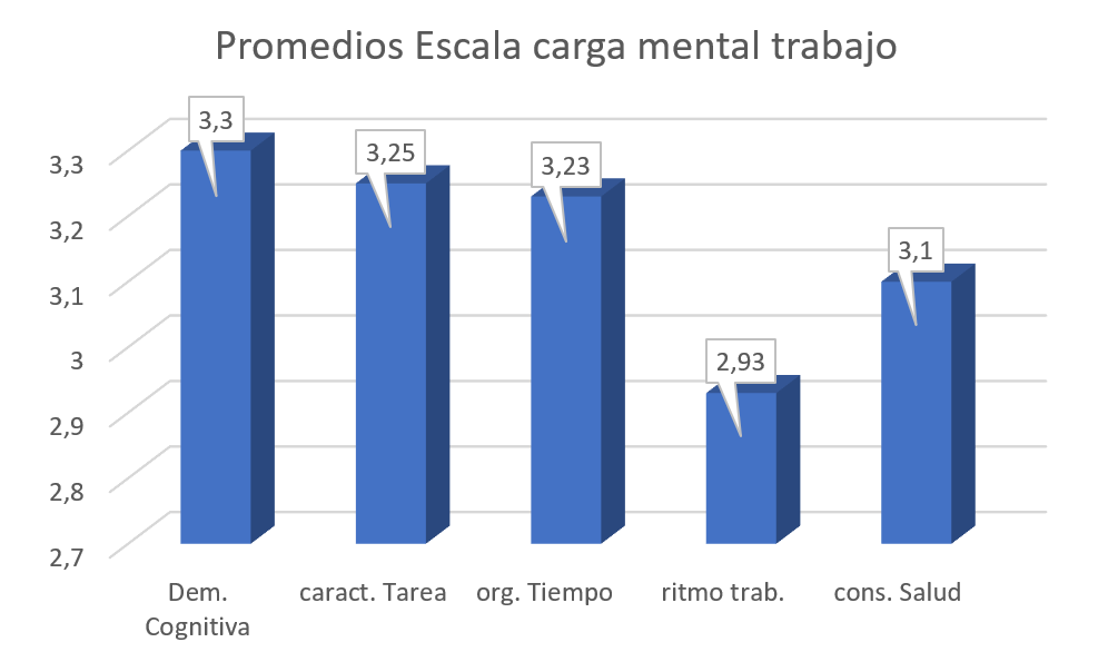 Figura 2: Valores promedio en dimensiones de la Escala de Carga mental de trabajo en funcionarios de establecimientos educativos.