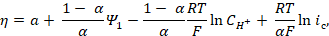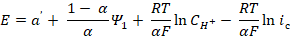 In order to clarify the rate determining stage nature, HER kinetic parameters, such as dE/dlog ic, dE/dlog CH+, (dlog ic/dlog CH+)E, dη/dlog ic, dη/dlog CH+ and (dlog ic/dlog CH+)η (where ic is cathode current density) were evaluated on Armco iron coated with an I-20A oil film containing GGHQ. Their values can be partially calculated on the basis of equations that connect the electrode potential, E, or the hydrogen overvoltage, ղ, with the cathode current density, ic [7]: