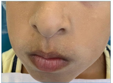 The patient used a Kinesio tape (elastic bandage) around the lips to increase the lip muscles’ motor function, improving lip sealing, mouth opening, and speech.