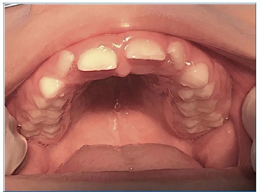 Regarding previous dental history, her mother reported that it was her daughter’s first visit to the dentist and that she consumed sugar food once to twice a week.
