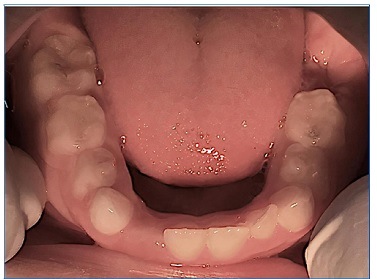 Figure 7 View of the lower arch, showing the extraction performed and the carious lesion on the left second deciduous molar