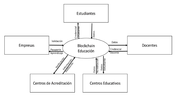 Los principales interesados con esta tecnología en el ámbito de la educación son los estudiantes y los docentes, sin embargo, las empresas, los centros de educación e incluso los bancos y el mismo gobierno pueden verse beneficiados por esta tecnología. Estas soluciones no solo proporcionan a los estudiantes una forma más eficiente de acceder a los registros, sino que puede reducir la carga administrativa y de costos de las instituciones para verificar y autenticar los registros. El caso ideal sería que existan una red mundial de blockchain en donde las cadenas de bloque de cada institución se unan y así el pasaporte de cada persona sería válido en cualquier parte del mundo. (Galen et al., 2018). La figura 1 presenta el contexto de BC en la Educación.
