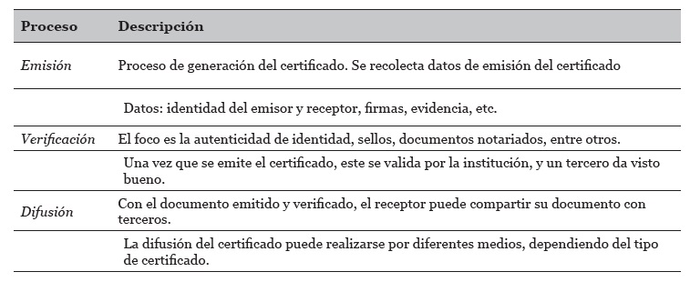 La necesidad de un certificado académico es primordial, ya sea por la asistencia a un congreso, el registro de una acreditación o el propio título de grado y postgrado, sirven como un mecanismo de verificación. Por esta razón, los pasos a seguir son generalizados. La tabla 3 presenta el proceso de un certificado.
