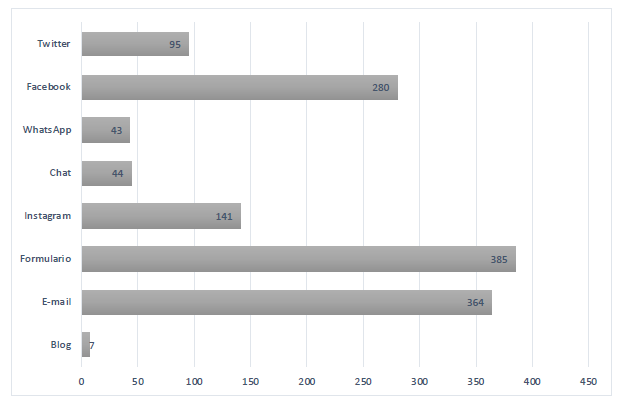 En primer lugar, se observa en 199 de los sitios web identificados como interactivos que a través de ellos se realiza únicamente una comunicación a partir de formularios de contacto y/o correo electrónico, lo cual, de acuerdo con lo expuesto en la teoría es una comunicación asincrónica. Esto indica que, en estos municipios, los sitios web de e-gobierno no tienen la posibilidad de tener una comunicación en tiempo real entre el ciudadano y el servidor público, a pesar de ser definidos como interactivos. En segundo lugar, se observó en el resto de los sitios web interactivos, los cuales son 282, que adicionalmente a los elementos de comunicación asincrónica, tienen funciones de comunicación que se encuentran integrados en la plataforma, tales como chat y foros para una comunicación en tiempo real, así como, elementos de comunicación no integrados a ellas, como redes sociales, entre las que dominan Messenger Facebook y WhatsApp, mismos que, permiten una comunicación sincrónica y/o en tiempo real, el resto de casos cuentan con Twitter e Instagram, entro otros medios de comunicación masivos.