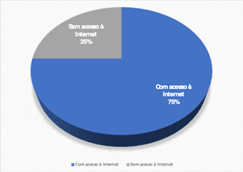 Sobre o acesso à internet em casa dos alunos, na generalidade, 75% (correspondente a 60 dos participantes) respondeu ter acesso à internet, e apenas 25% (correspondente a 20 dos participantes) respondeu não ter acesso (gráfico 5). Do cruzamento dos dados que se fez entre as variáveis acesso ao computador, acesso ao smartphone/tablet e acesso à internet, constatou-se que 72% dos alunos tinham um equipamento tecnológico com acesso a internet. Na última década, os smartphones tornaram-se os dispositivos mais populares de acesso à Internet, ou seja, as crianças do século XXI são a “geração touchscreen” - “nativos digitais” (Perdigão, 2020). Um estudo realizado em 2019, já tinha revelado que 87,5% dos alunos do ensino superior em Angola tinha acesso à internet - de velocidade reduzida - por meio de um dispositivo móvel (Barbante, 2019).