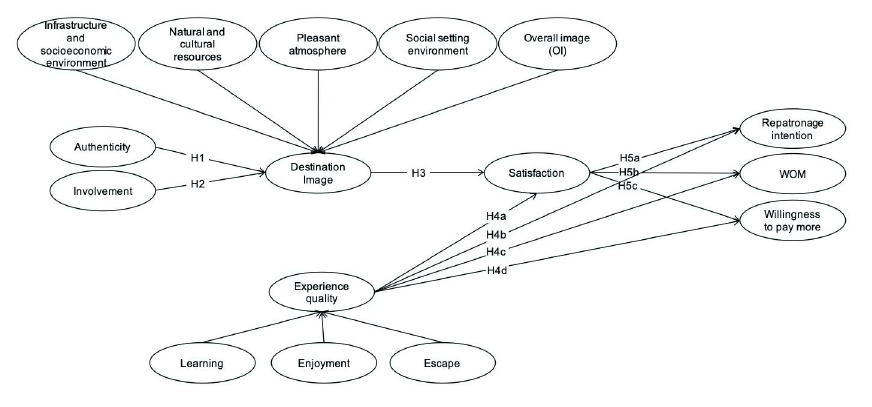 In this research on the effect of originality and involvement on destination image, the findings demonstrate that satisfaction is influenced by destination image. Moreover, destination image is also shaped by authenticity and involvement. The findings also demonstrate that developing re-patronage intentions, WOM recommendations, and willingness to pay more can be facilitated through experience quality and satisfaction. Notably, the study highlights that satisfaction does not significantly impact willingness to pay. The findings underscore the pivotal roles of satisfaction and experience quality in shaping tourist re-patronage intentions and WOM motivation. However, for achieving a higher willingness to pay, the quality of experience emerges as the most critical factor, while satisfaction plays a minor role.