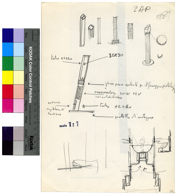 Fig. 1 Study sketches for the Gibigiana Lamp, digitised with Kodak target. Source: Image courtesy of Fondazione Achille Castiglioni - SIRBEC