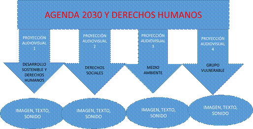 - Lograr la articulación de los postulados internacionales entre la Agenda 2030 y los derechos humanos mediante un recorrido audiovisual con imágenes, sonido y texto a través del relato con el fin de optimizar el aprendizaje del estudiantado.