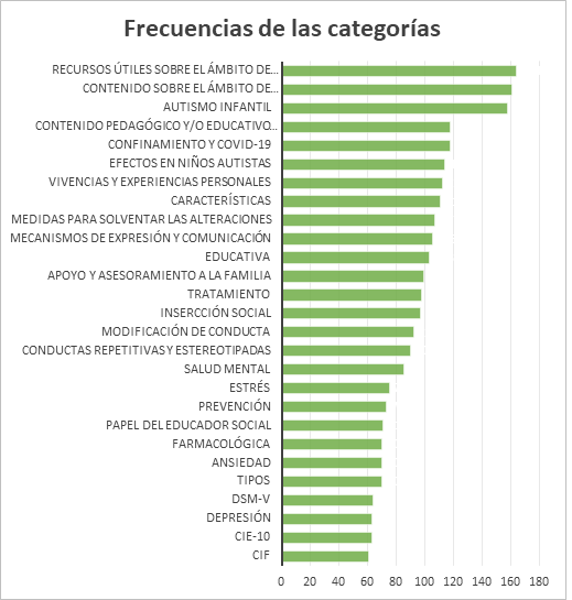 En la Figura 2 se presentan las frecuencias por categorías. En el enlace https://cutt.ly/JbEkQaG se recogen las categorías y el análisis desarrollado.