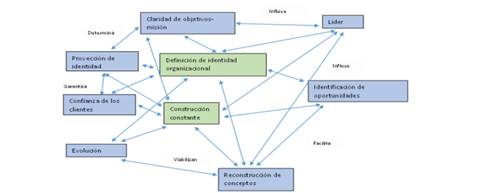 Con base en las experiencias empresariales se asevera que, en un proceso inteligente de capacidades emocionales, se construye constantemente la identidad organizacional y una forma natural de responder a las exigencias del entorno, las cuales se desarrollan en función del autorreconocimiento organizacional. Estas aseveraciones son coherentes con Mendoza (2013). La Figura 2(F4) muestra los constructos (categorías) relacionados al concepto.