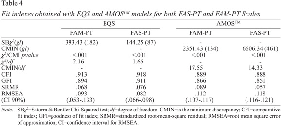 Confirmatory factor analysis – FAS-PT and FAM-PT