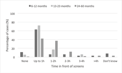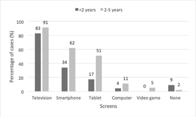 The results of this study confirm that children are starting to consume media at very early ages. Although current European, American and Canadian guidelines agree that children under the age of two years should have no screen time, we found in our study that 85% of children in this age group were exposed to screens every day. It is also important to reinforce that, in our study, more than one out of five children began screen exposure before six months of age.15,26,27