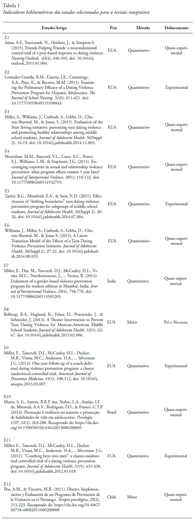 Intervenções na escola para prevenção da violência nas relações de intimidade entre adolescentes: revisão integrativa da literatura