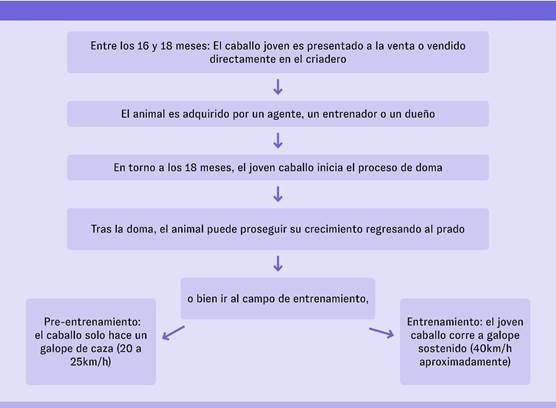 Detengámonos en la organización de la formación y trayectoria de un caballo de carrera de galope, a partir del siguiente cuadro.