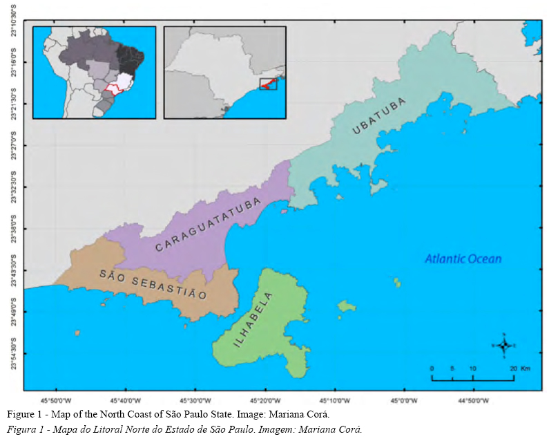 The North Coast of São Paulo is composed of three municipalities on the mainland, Caraguatatuba, São Sebastião and Ubatuba; and one island, Ilhabela (Figure 1). The region is an administrative unit of the State of São Paulo, for coastal management (Lei nº 10.019, 1998) and water resources (Lei nº 9.034, 1994), i.e., the North Coast has not only a physiographic identity but a management identity as well. This concept can also be applied to solid waste management.
